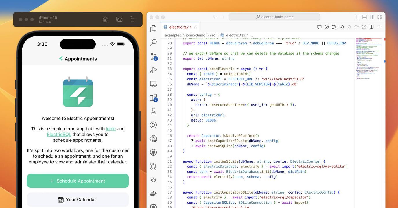 The pairing of ElectricSQL with the Ionic Framework and Capacitor is a compelling route for rapid application development. It results in a single codebase for web, iOS and Android apps, along with full offline and collaborative real-time support.
